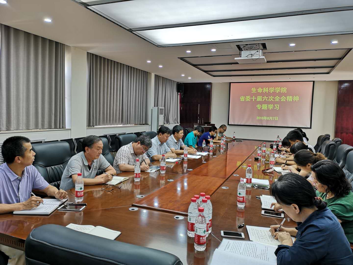 8月7日下午,依照学校党委统一部署,365英国上市官网在线在学院B201会议室召开专题会议,组织学习省委十届六次全会精神。365英国上市官网在线、植物逆境生物学重点实验室党政班子成员、各党支部书记、部分高层次教师代表参加了学习。会议由学院党委书记赵东保主持。